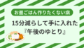 でも午後の家事や育児を笑顔で乗り切るための身体と心の栄養を摂ると考えましょう。